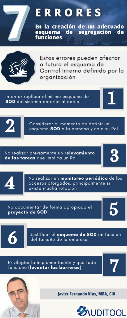 Soy Máster en Administración de Empresas por la Universidad Politécnica de Madrid y Licenciado en Administración de Empresas (UADE). Durante más de 12 años me he desempeñado en uno de los principales estudio de Auditoría y Consultoría a nivel mundial, en donde ha tenido la oportunidad, dentro del Departamento de Advisory, de interactuar con una gran cantidad de empresas nacionales e internacionales analizando el funcionamiento operativo de las mismas y proponiendo oportunidades de mejora. Mi campo de acción también ha abarcado la realización de Auditorías Internas en numerosas empresas, siendo adicionalmente Auditor Interno Certificado (CIA). Fui profesor de la Universidad del Salvador en el postgrado de Auditoría de Sistemas, así como miembro del comité de publicaciones del Instituto Argentino de Auditores Internos. También soy Co-Director de la Diplomatura en Management de Centro de Servicios Compartidos en la UCEMA. He publicado trabajos relacionados con mis especialidades tanto en Argentina como en España. Adicionalemnte soy Conferencista internacional, habiendo dictado cursos y conferencias en Perú, Colombia y Argentina, entre otros países. En mis ratos libres disfruto de la lectura de libros de todo tipo y de mi familia. Mi próximo libro seguramente será sobre Auditoría Interna, en donde intentaré transmitir todos mis conocimientos en esa temática. Ver todas las entradas de Javier Klus
